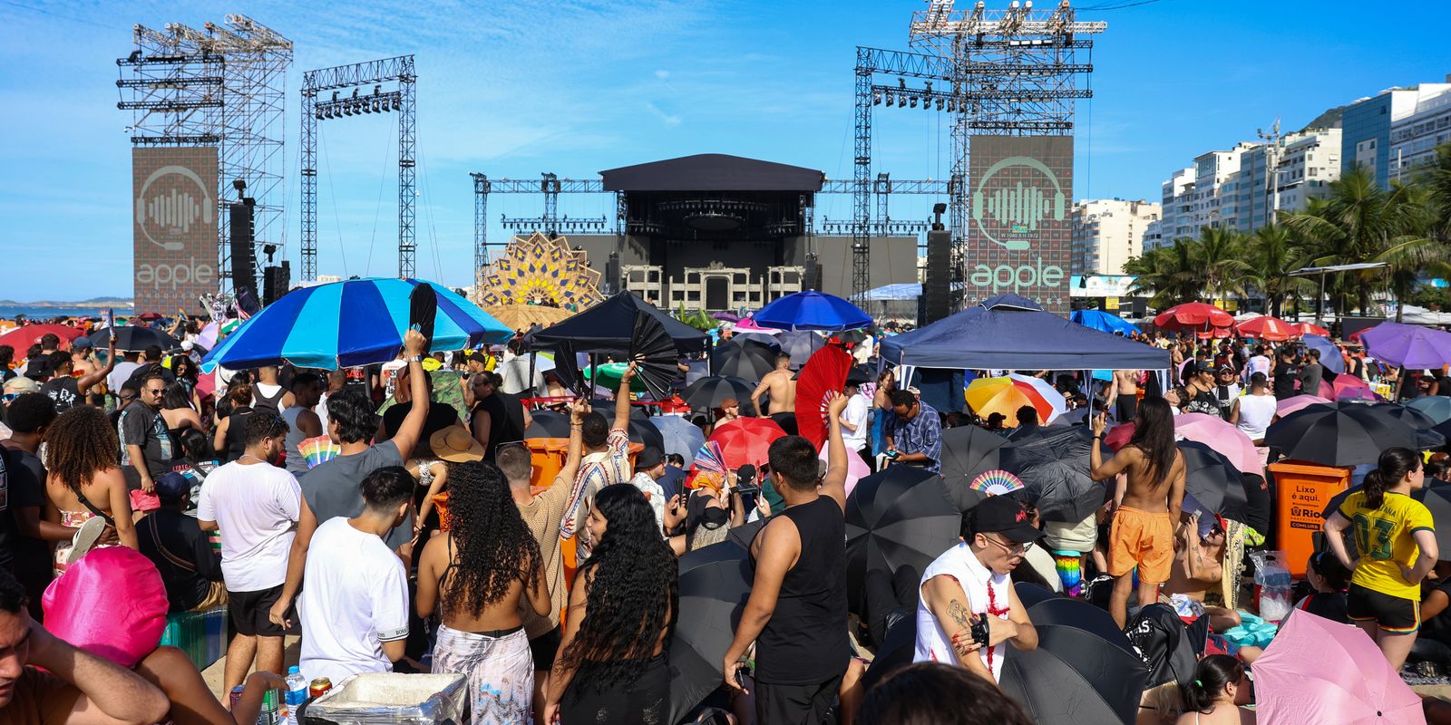 O evento, realizado em espaço aberto, deve reunir público de cerca de 1,6 milhão de pessoas. Segundo relatos publicados hoje (3) em redes sociais, a área reservada da praia foi invadida durante a manhã e a estrutura teria cedido.