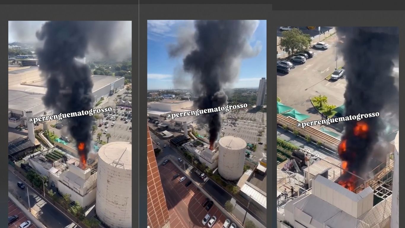 Imagens registradas por populares e divulgadas na página ‘Perrengue MT’ no Instagram, mostram as chamas no telhado e uma cortina de fumaça preta se espalhando pelo céu da cidade.